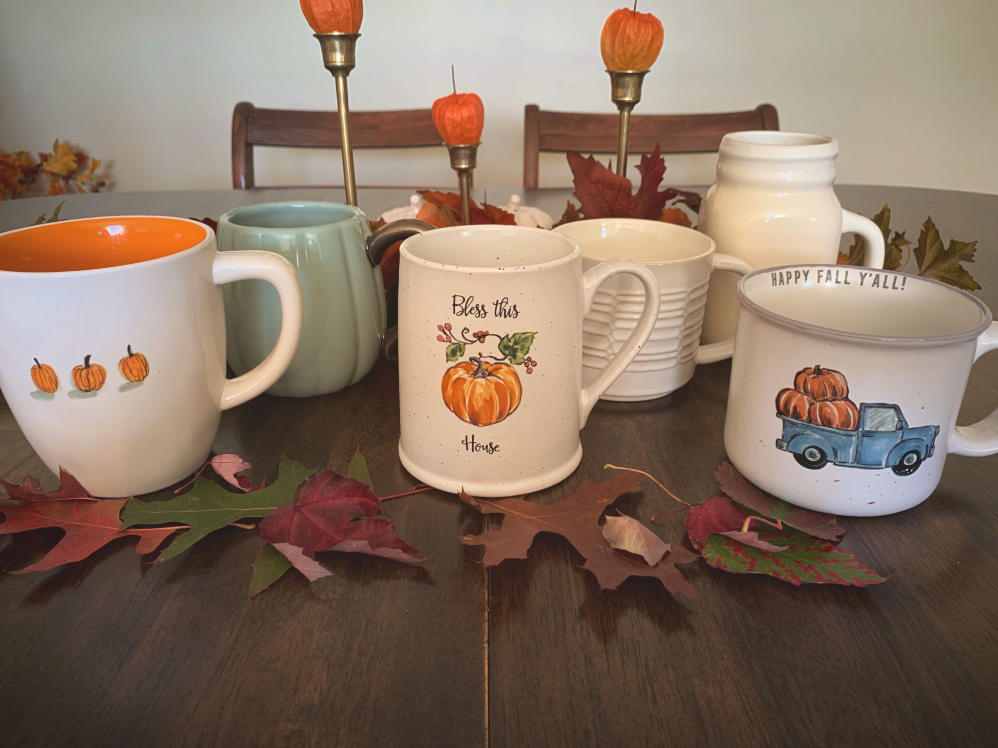 Last, but certainly not least, MUGS for all your cozy hot drinks! Those who know me off the screen know I have a serious mug addiction! So I have channeled my addiction into seasonal mugs. I change them up and out each season. So for fall, here are a few of my faves. All of these are from Winners and Superstore. Inexpensive and they make me smile.