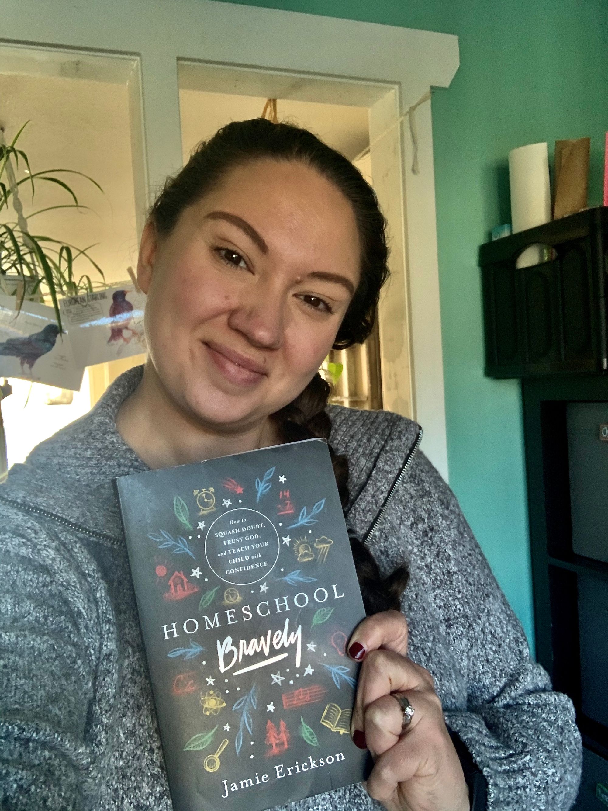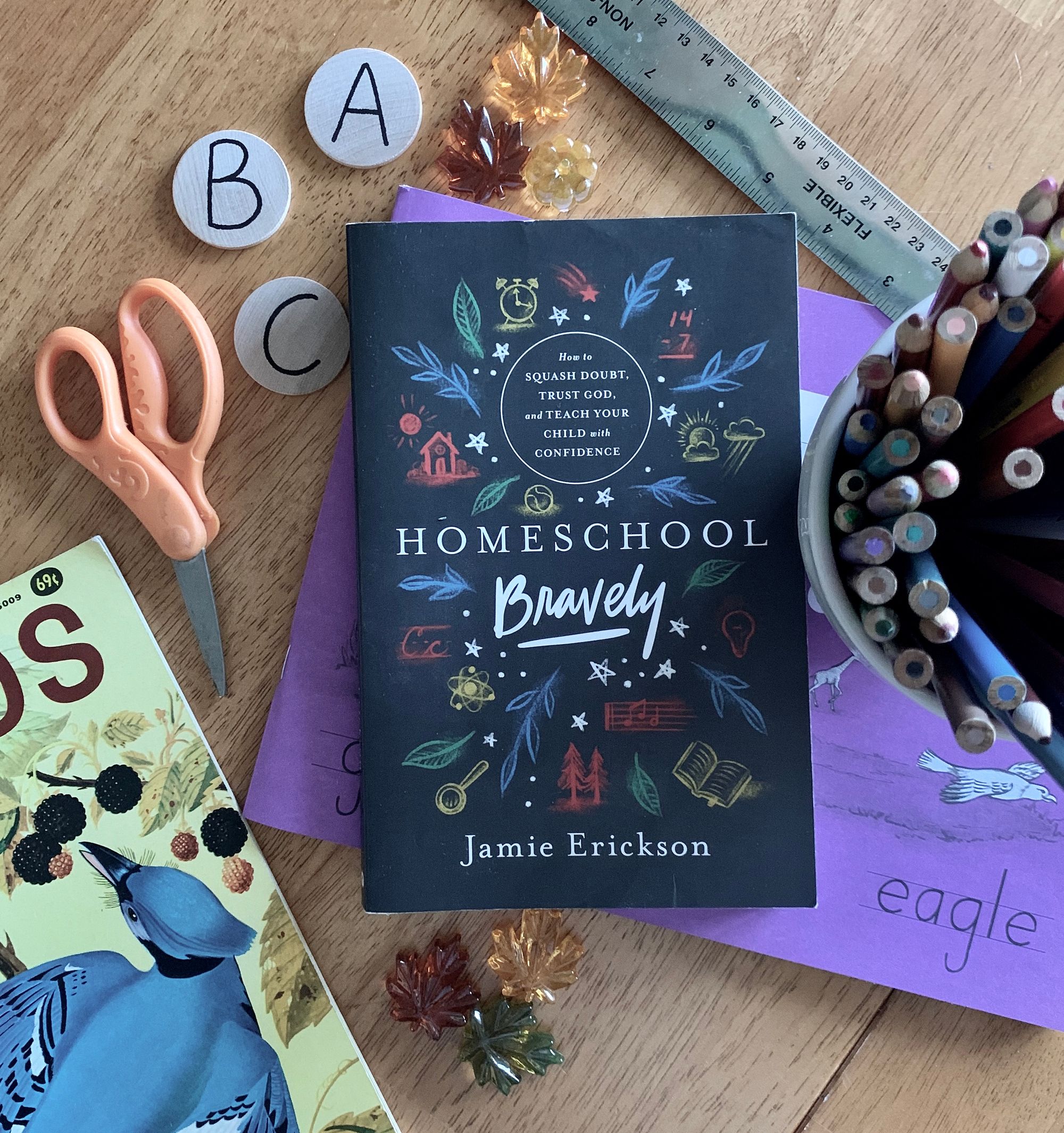 Now, onto this amazing book that was brought my way after making this decision. Homeschool Bravely, the cover says it all really, "How to SQUASH DOUBT, TRUST GOD, and TEACH YOUR CHILD with CONFIDENCE". It's write up on Amazon was right on the nose. The doubt in myself that I felt in the carrying out of this decision was HUGE and actually a bit debilitating. So many options, choices, ways, curriculums, etc....(It's awesome how many resources there are, but also super overwhelming!) Jamie Erickson, a mom and homeschooler herself knows it all and speaks from the trenches and heart. God has blessed her in her sharing of her experiences and what life has brought her in the homeschool journey, because that my friends is what it is, a journey. My biggest takeaway from this book was that God is steering this homeschool ship. He will provide because He has brought me here to this place. It will be HIM not me that carries our home through this time of unknown territory. He has every time before now and He will again. I can say that with utmost certainty.