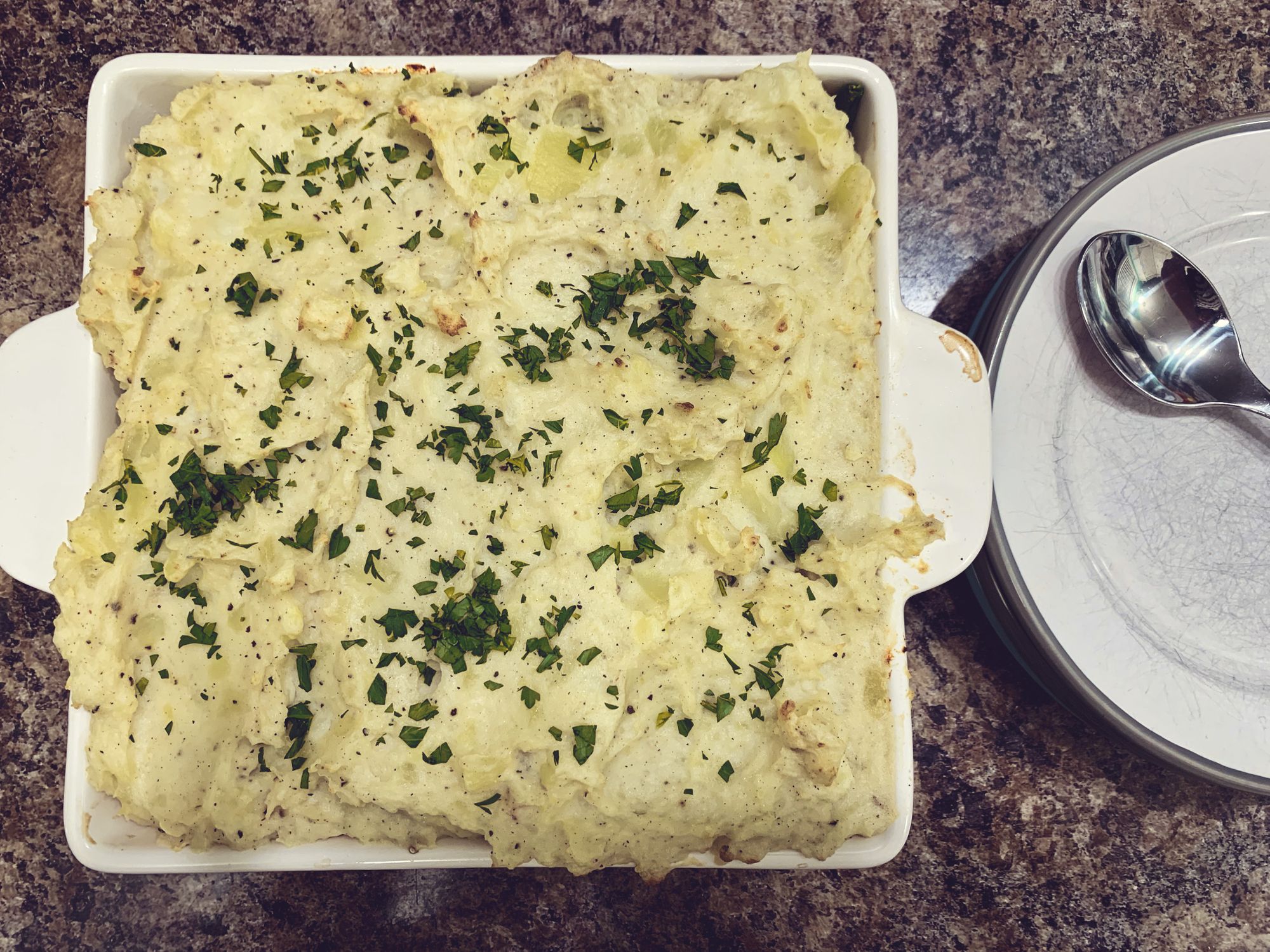 Step 10: Final step!! You made it! Take out of the oven once your pie is heated through and the mashed potato topping has nicely browned, about 30 minutes. Top with some fresh chopped parsley. Bon Appetite!