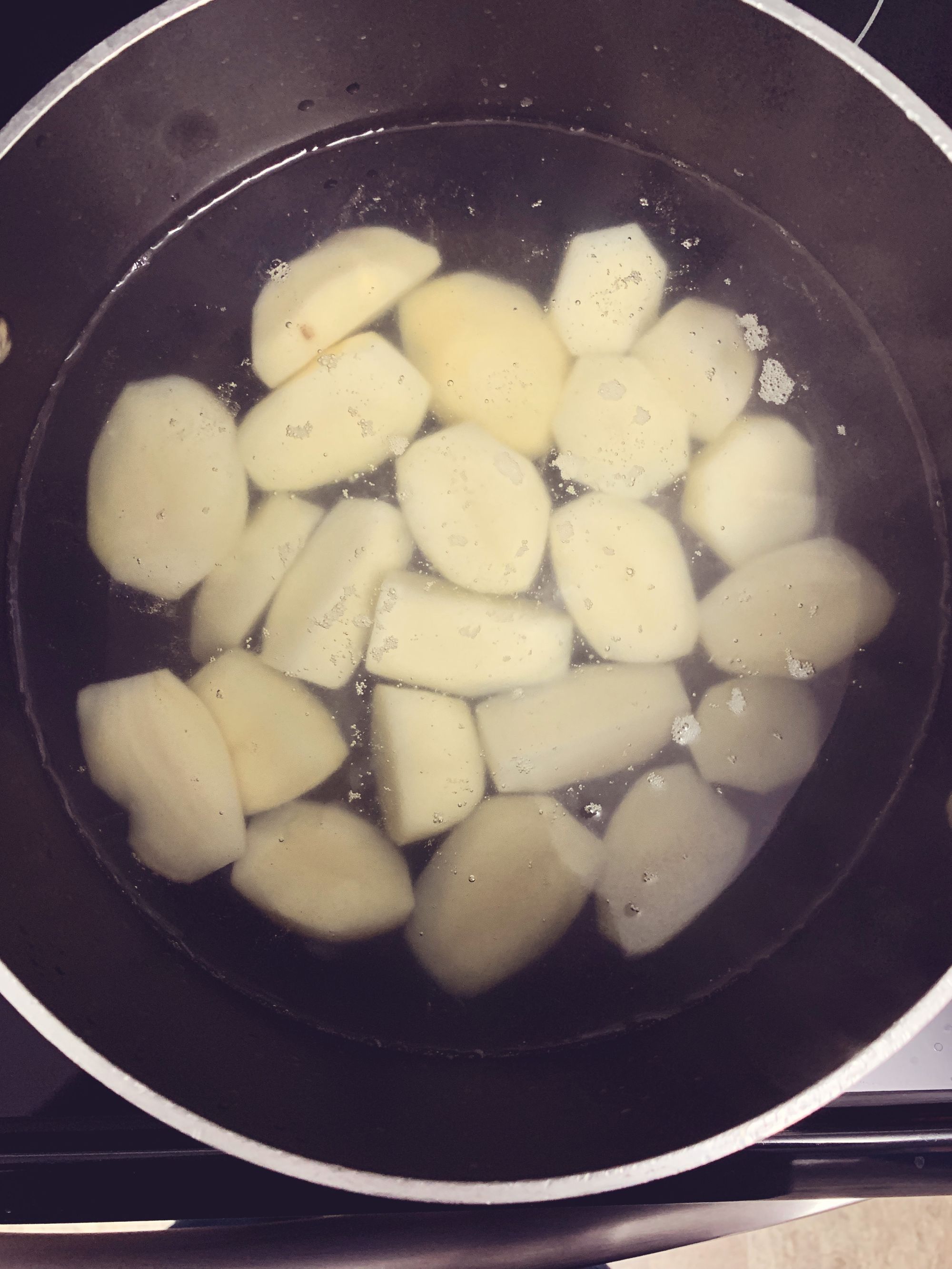 Step 1: Begin by boiling up your potatoes in some lightly salted water.