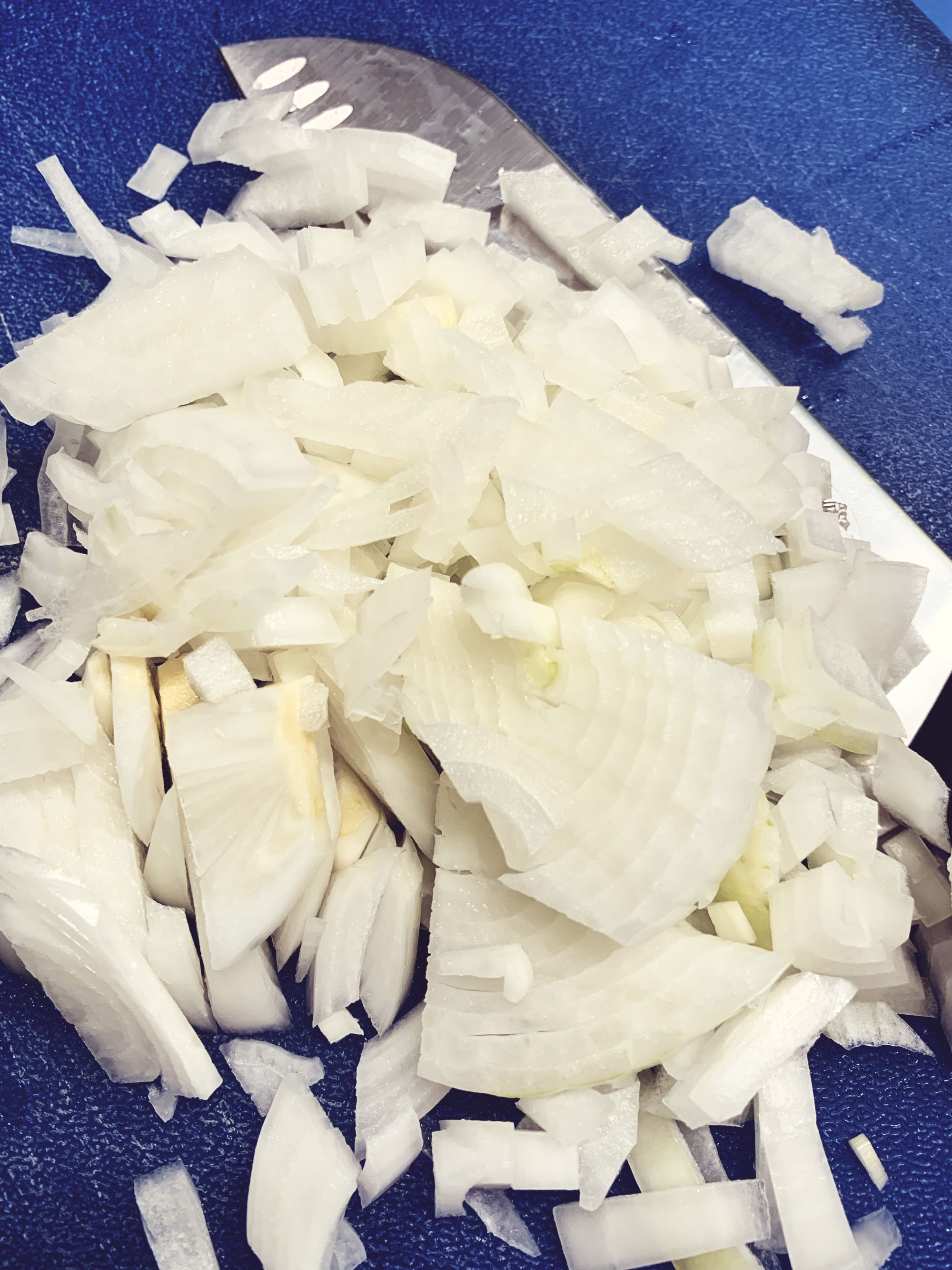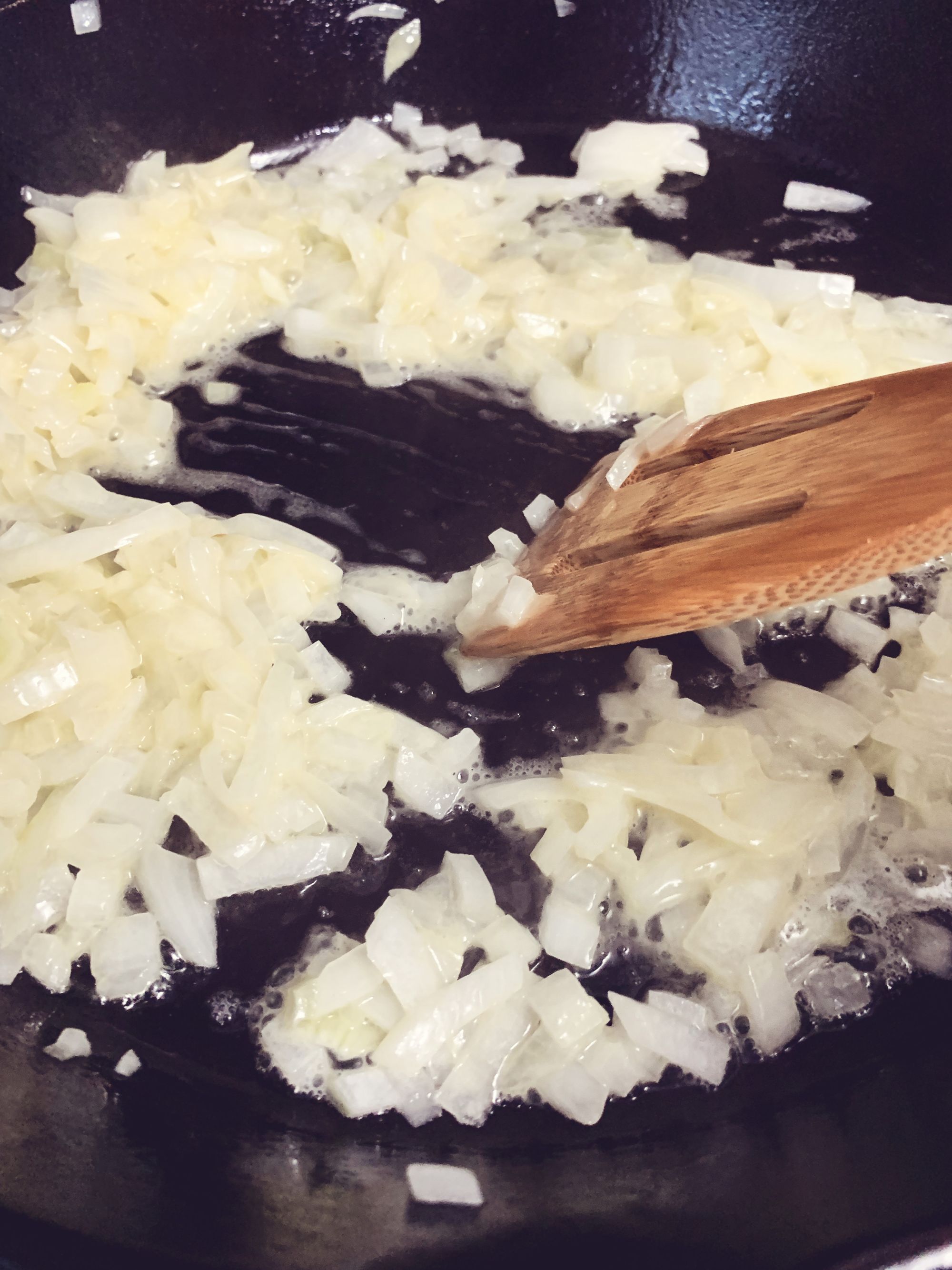 Step 1: Preheat your pan over medium high heat. Melt your butter and then add your onions. Stirring occasionally until the onion has softened. (Next time when I use fresh garlic instead of the powder, this is when I'll add it.)