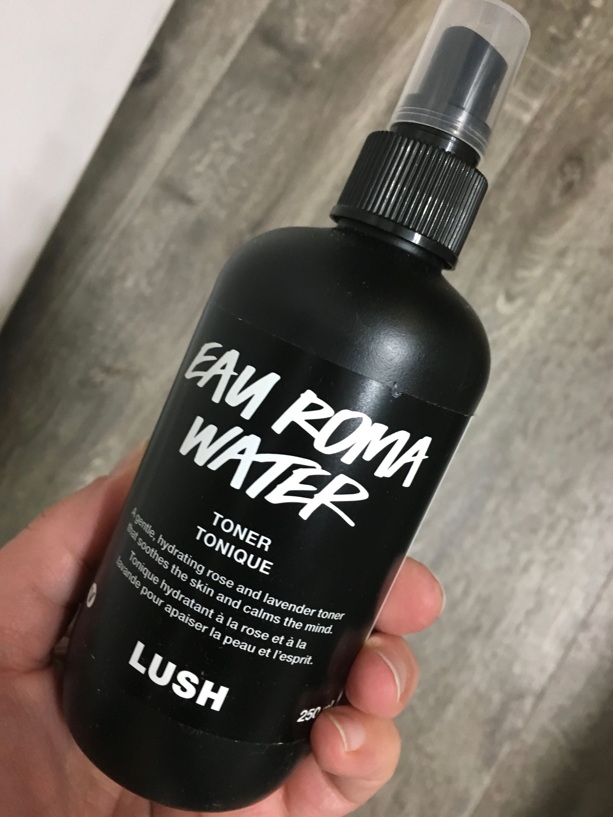 1.Lush's Eau Roma Water (Rose water toner) I'll spray on to rehydrate after the face-wash. And it helps my moisturizer go much further when applying it.