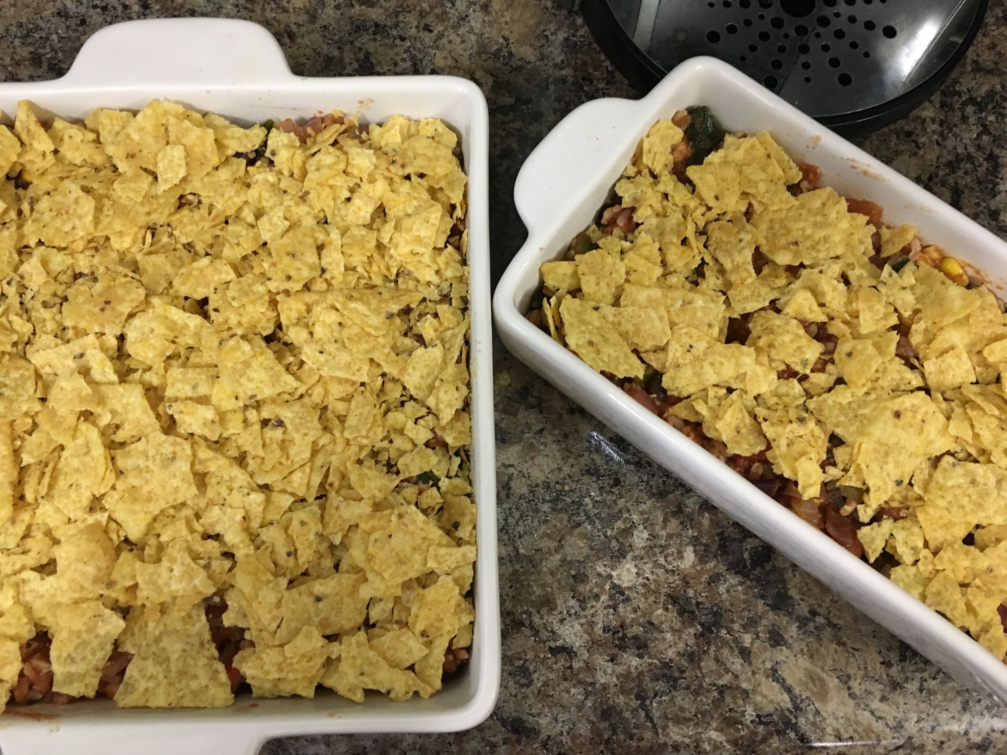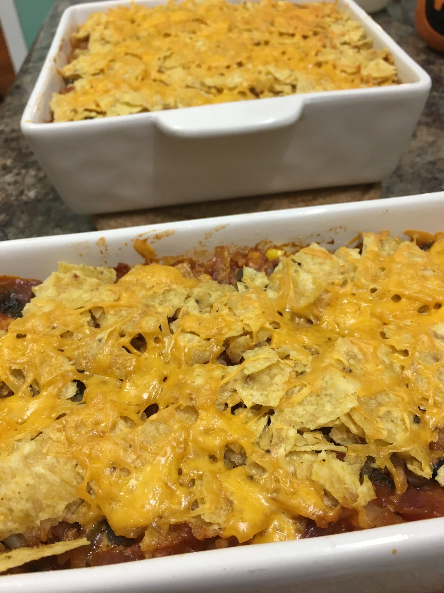 Step Ten- Pull your casseroles from the oven and check if they are bubbling around the edges. If yes, they are done! Plate, top with your choice of toppings and ENJOY!